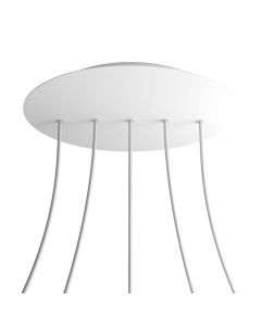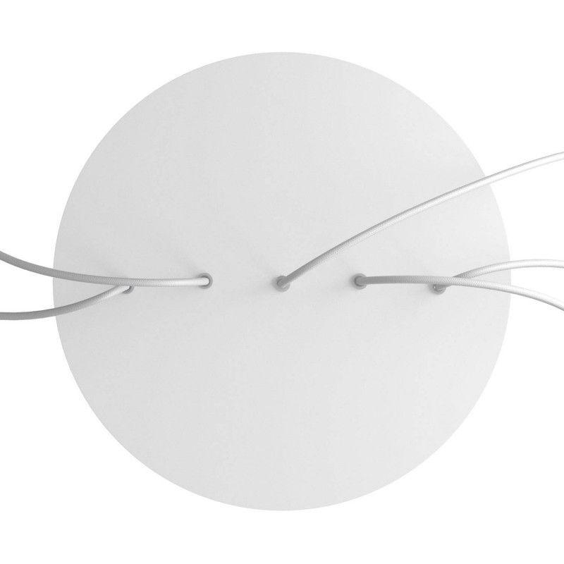 Extra info | Diameter plafondkap: 30 x 3,5 cm. De witte plaat heeft een diameter van 40 cm. Deze plafondplaten hebben zijgaten zodat deze met elkaar kunnen verbonden worden. Let op: deze wordt geleverd zonder snoeren! |