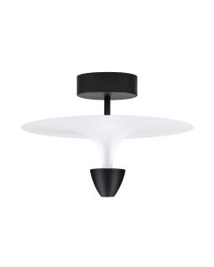 Stijlvolle plafondlamp met een elegante combinatie van zandzwart en wit. De geïntegreerde 11W LED zorgt voor een zachte, gelijkmatige verlichting, ideaal voor woonkamers, gangen of slaapkamers met een moderne uitstraling.